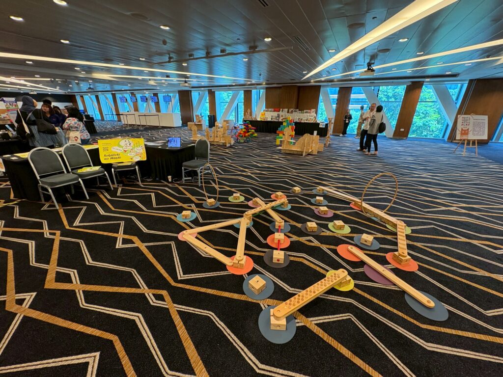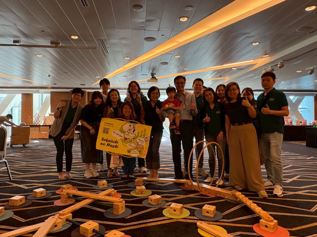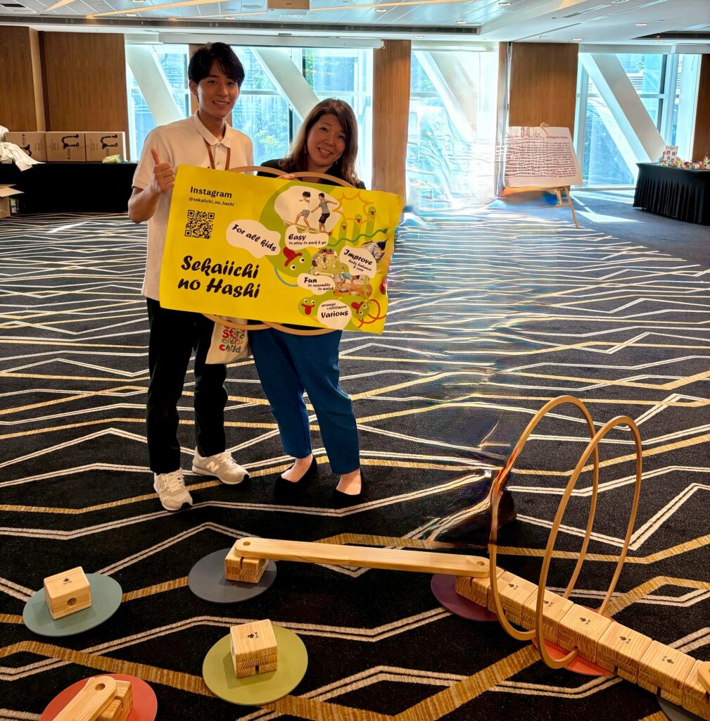 Many professionals involved in early childhood education in Singapore visited our booth, and they had the opportunity to experience Sekaiichi no Hashi firsthand.